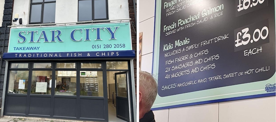 STAR CITY is the go-to spot for mouth-watering fish and chips in Liverpool. Located at 148 Muirhead Ave E, this takeaway joint serves crispy, golden fish and perfectly cooked chips that make for an unbeatable combo. Friendly staff greet you with a smile as you enter the cozy space, perfect for quick bites and satisfying meals. With a menu packed full of variety, including options for vegetarians and various quick snacks, STAR CITY caters to both traditional tastes and adventurous palates. Whether it’s lunch or dinner, this casual eatery is designed for families, offering a warm atmosphere that’s open to all. Affordable prices in the range of £10–20 make it easy to enjoy quality food without breaking the bank.